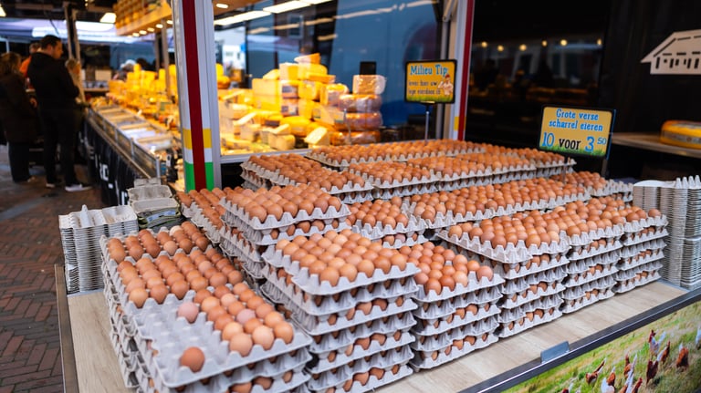 Grote scharrel eieren vers van de kippenboer. Kom ze gezellig zelf uitzoeken op de markt.