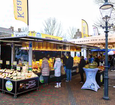 De markt is voor ons meer dan verkoop alleen. Het is een plek van contact, verhalen en vaste gezichten. We nemen de tijd voor advies, laten je graag proeven en delen met plezier onze kennis.